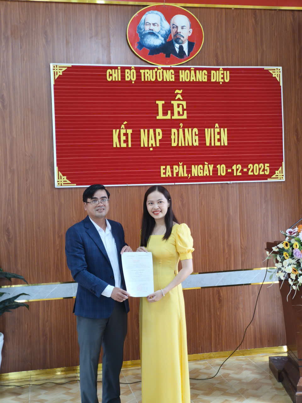 Ngày 10/12/2025, Chi bộ Trường THCS Hoàng Diệu long trọng tổ chức Lễ kết nạp quần chúng Võ Ngọc Thao Thao vào Đảng Cộng sản Việt Nam.