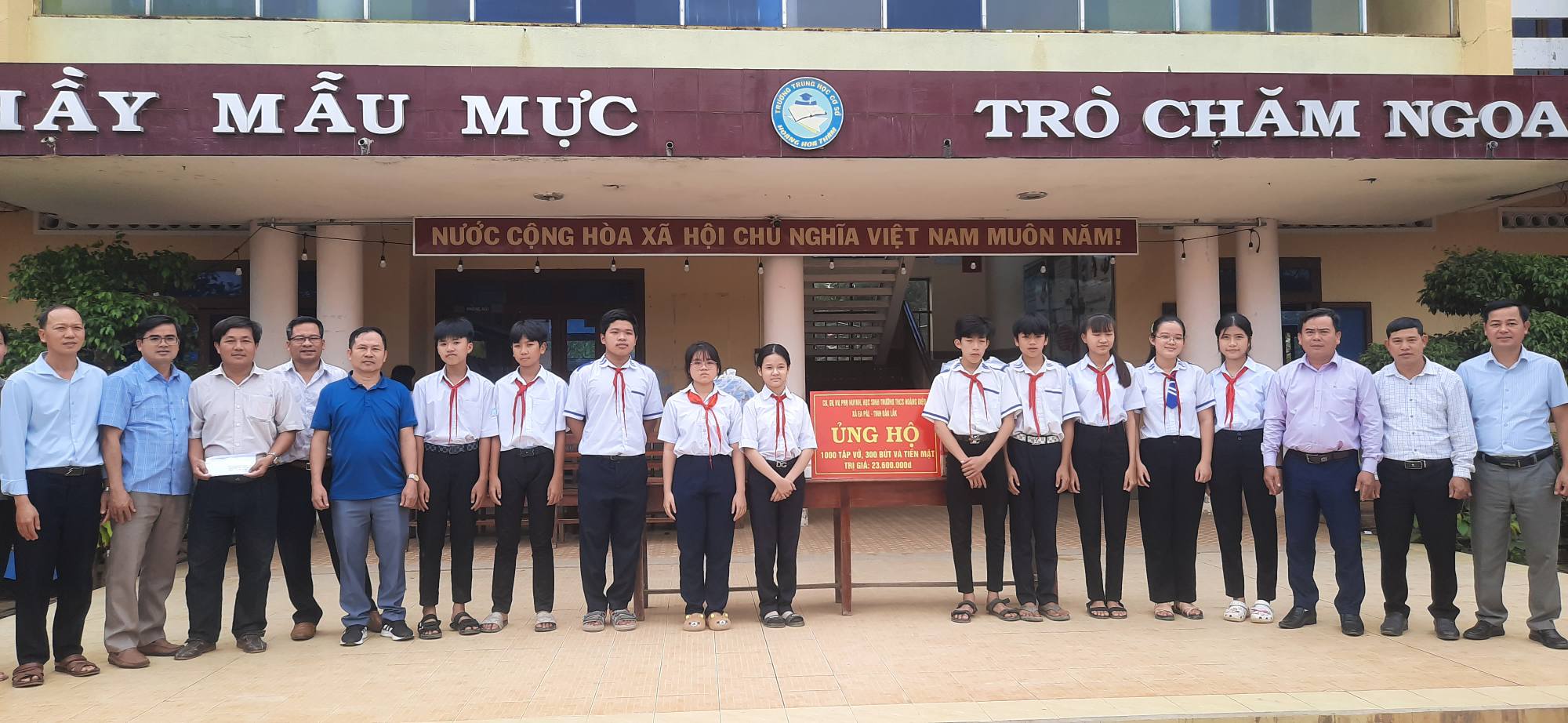 Ngày 29/11/2025, trường THCS Hoàng Diệu, xã Ea Păl đã cử đại diện BGH, GV, Nhân viên, PHHS đến thăm và trao quà hỗ trợ cho học sinh TrườngTHCS Hoàng Hoa Thám, phường Đông Hoà.